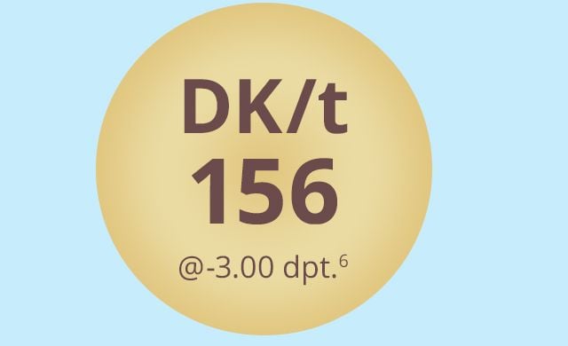 *Applies to Dailies Total1® spherical** Dk/t at centre of -3.00D lens and Dk are based on manufacturer-published values.